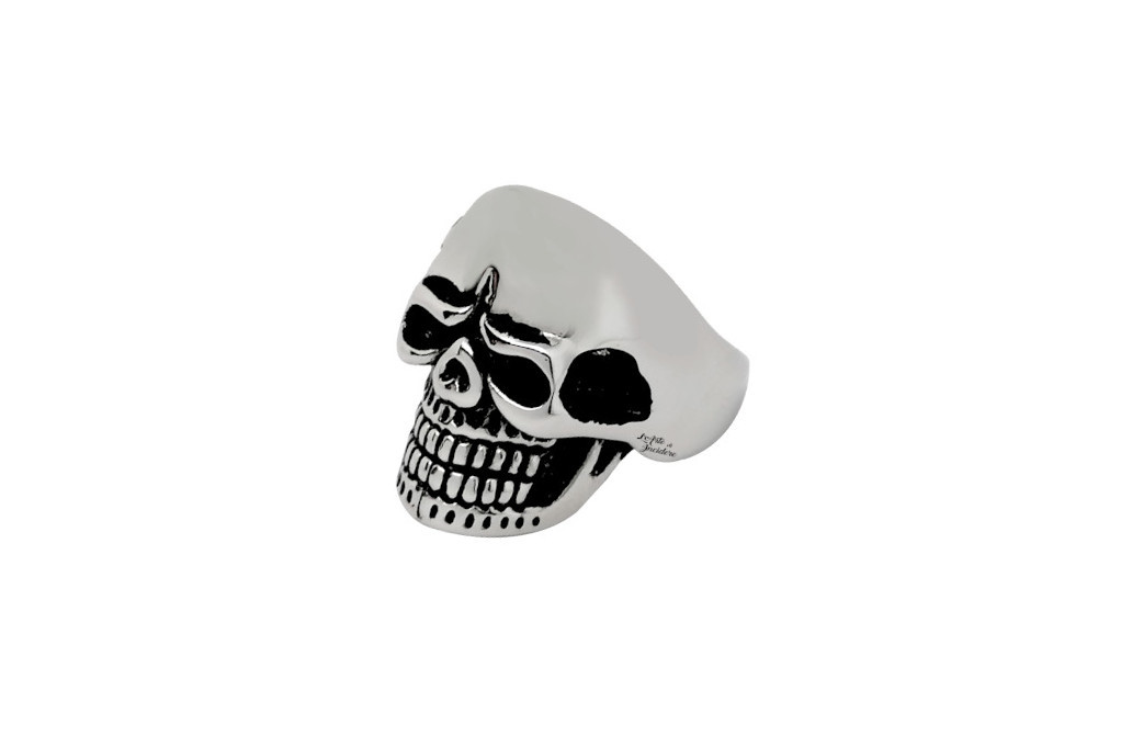 Anello teschio acciaio (Nichel Free) in acciaio inox, non si ossida a contatto con acqua (dolce e salata) profumo e sudore