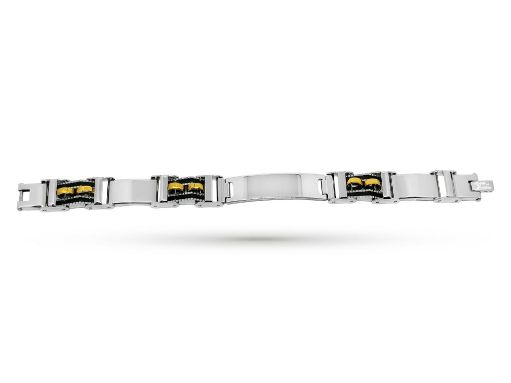 l➤Bracciale biker uomo placca ampia e dettagli dorati con incisione personalizzata 1 per lato.