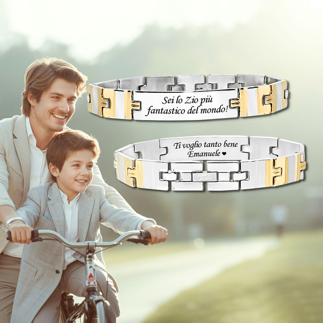 Grazie all’incisione, questo bracciale diventa un ricordo personale: un pensiero che lo zio potrà portare con sé come simbolo di affetto e famiglia. È un’idea regalo perfetta per compleanno, Natale,