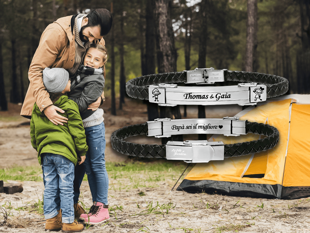 l➤Bracciale per papà personalizzato con incisione disegno family e iniziali con 1 dedica.