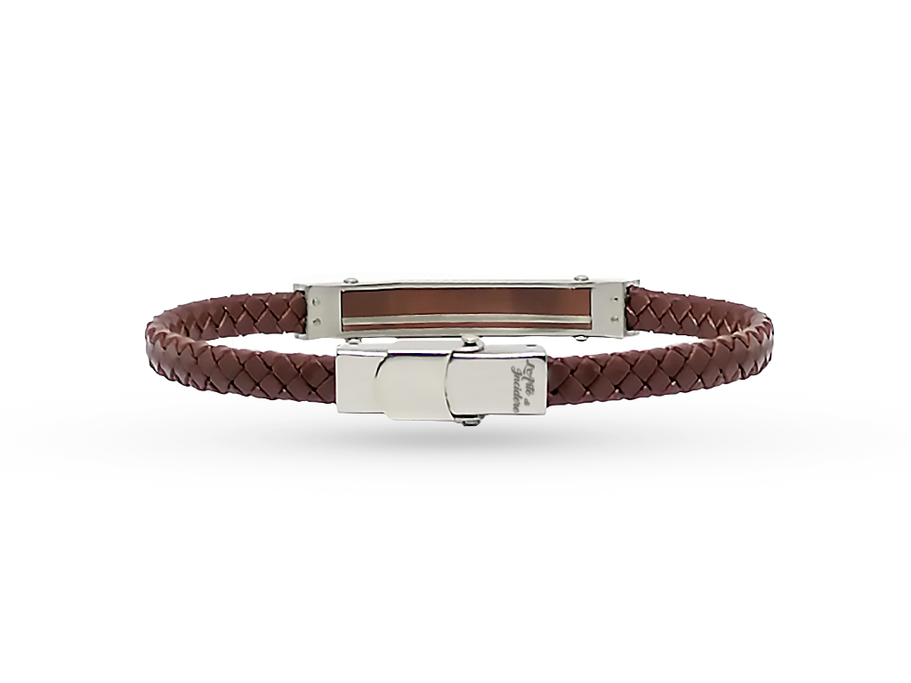 l➤Bracciale uomo ecopelle e placca acciaio marrone con 1 incisione personalizzata.