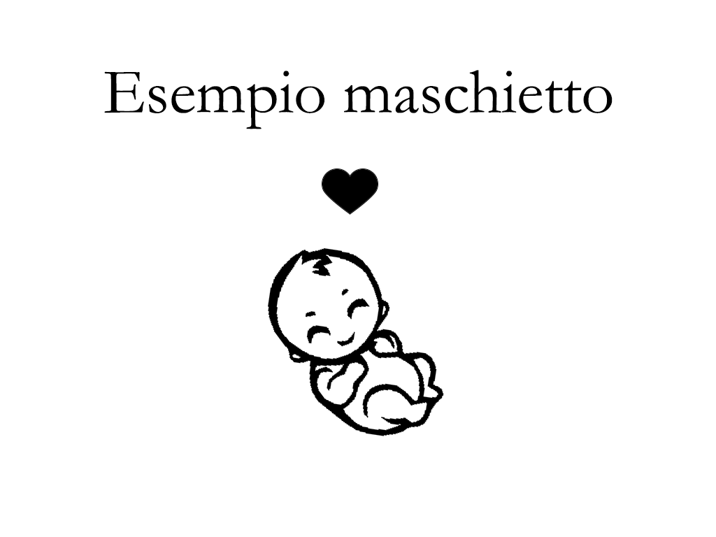 Consigliamo di indicare il sesso del bambino/a con le lettere F (femmina) oM (maschio) nelle note articolo e cambieremo il disegno in funzione delle vostre esigenze