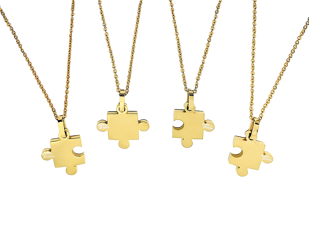 Collana puzzle 4 pezzi dorati con incisione personalizzata una per lato