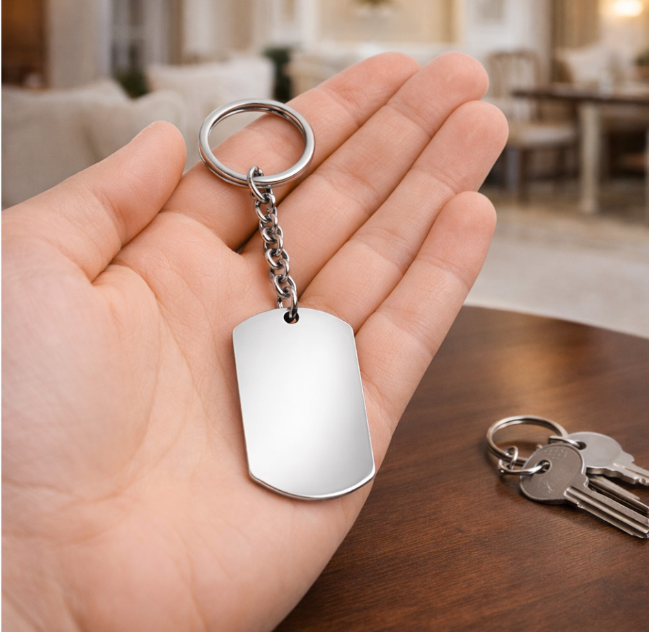 Il Portachiavi Piastrina Acciaio è un accessorio pratico e resistente, pensato per accompagnarti ogni giorno e custodire un significato speciale. Minimal ed elegante, è perfetto sia per uso personale sia come idea regalo: un piccolo oggetto che diventa un ricordo prezioso grazie alla personalizzazione.